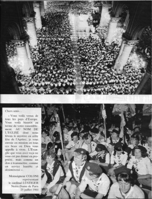 On April 15th, 2019, a tragic fire burnt the Cathedral Notre Dame of Paris in France; a lot of people were shocked by the pictures of this drama. For UIGSE-FSE, it has a particular resonance, as during the first Eurojam in summer 1984, The Guides and Scouts of Europe have consecrated their movement to Our Lady of Annunciation in this Cathedral.