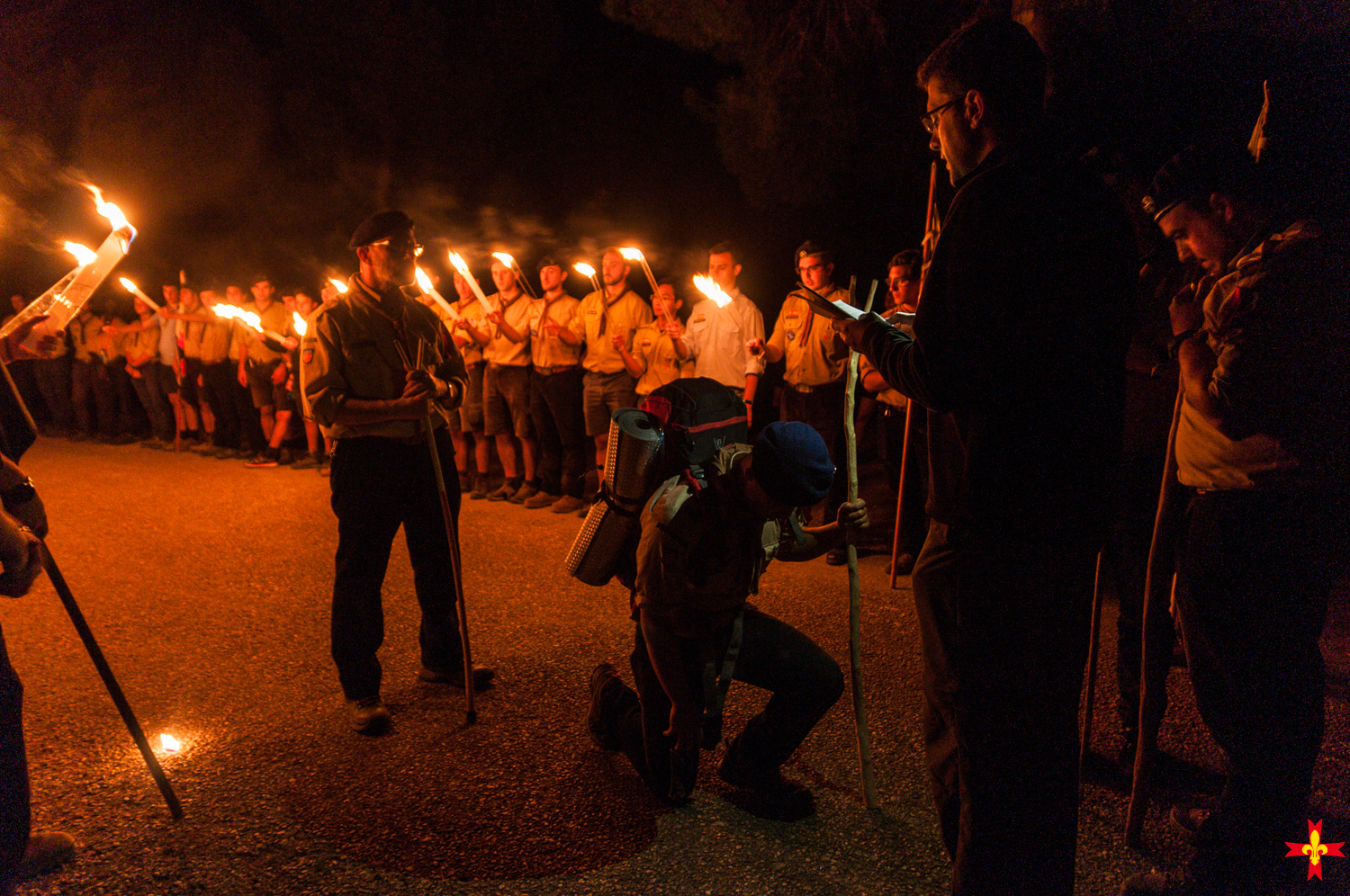 In the evening, a festive campfire took place on the theme of the history of Europe and the FSE, born in 1956 in Cologne. The day closed with an Eucharistical adoration, accompanied by the national scout choir, followed by the ceremonies of a rover departure and a senior guide commitment. Alvaro and Daniela gave testimonies about their path with scouting until their rover departure / senior guide commitment.