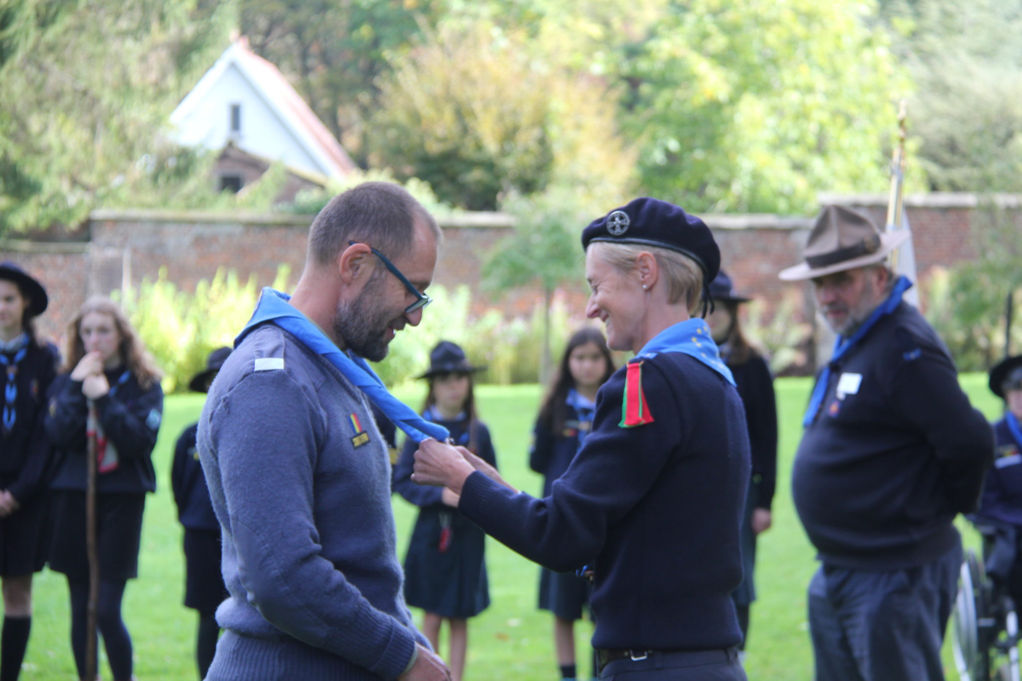 Then, as soon as the weather allowed it, the gathering took place outside. At this occasion, two General Commissioners were recognised: Natalia Andrusiak from Ukraine, and Alin Barbatu from Romania. Congratulations to them for their service!